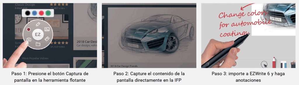 Con la herramienta flotante de EZWrite, los usuarios pueden capturar capturas de pantalla de cualquier cosa en la pantalla, independientemente de la fuente, incluido el contenido de aplicaciones, sitios web y videos. Luego, pueden importar este contenido a EZWrite 6 para un mayor análisis y anotaciones en una página nueva.